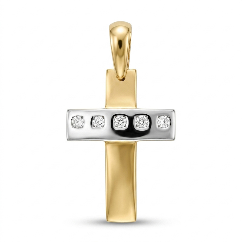 Prívesok krížik zo žltého a bieleho zlata 14-karátového zlata so zirkónmi