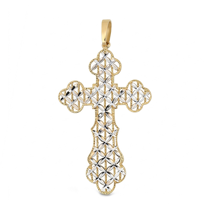 Prívesok krížik zo žltého a bieleho 14-karátového zlata