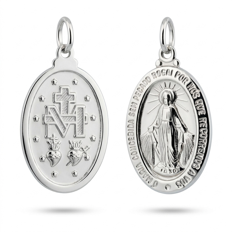 Prívesok panna Mária z bieleho 14-karátového zlata