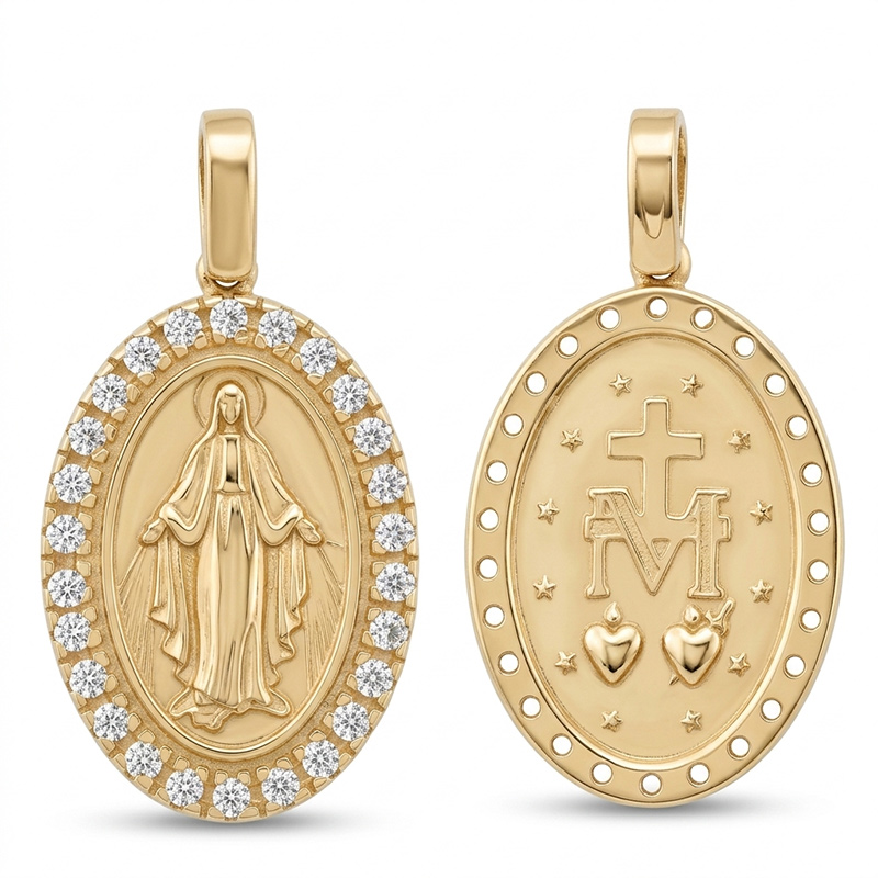 Prívesok panna Mária zo žltého 14-karátového zlata so zirkónmi