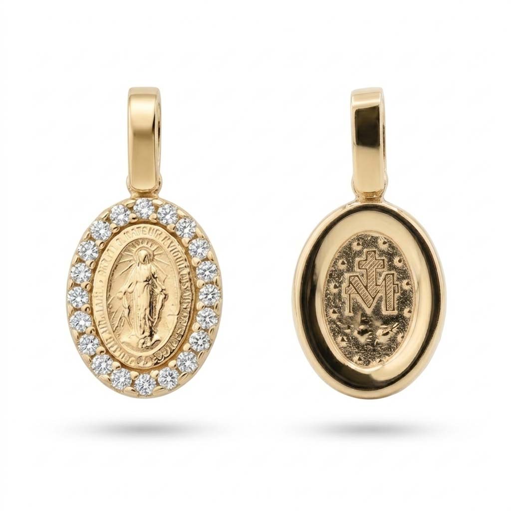 Prívesok panna Mária zo žltého 14-karátového zlata so zirkónmi