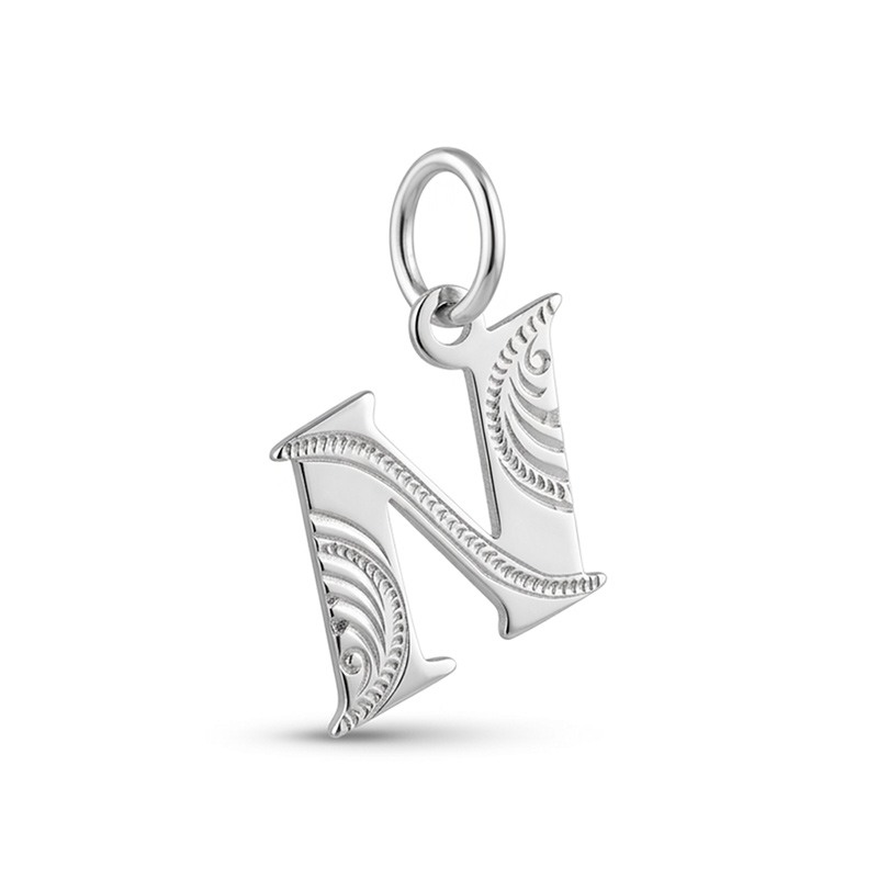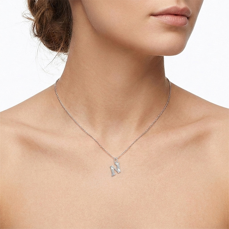 Prívesok písmeno „N“ z bieleho 14-karátového zlata