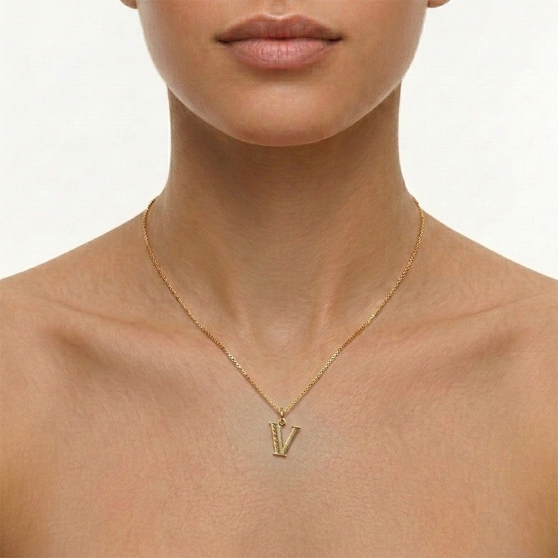 Prívesok písmeno V zo žltého 14-karátového zlata
