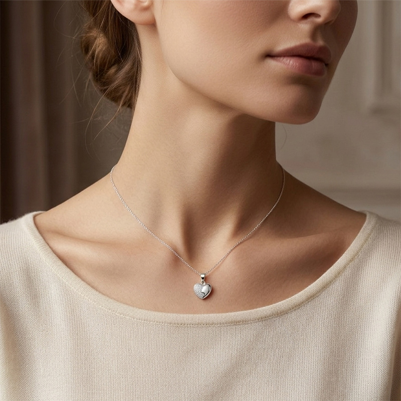 Prívesok srdiečko z bieleho 14-karátového zlata