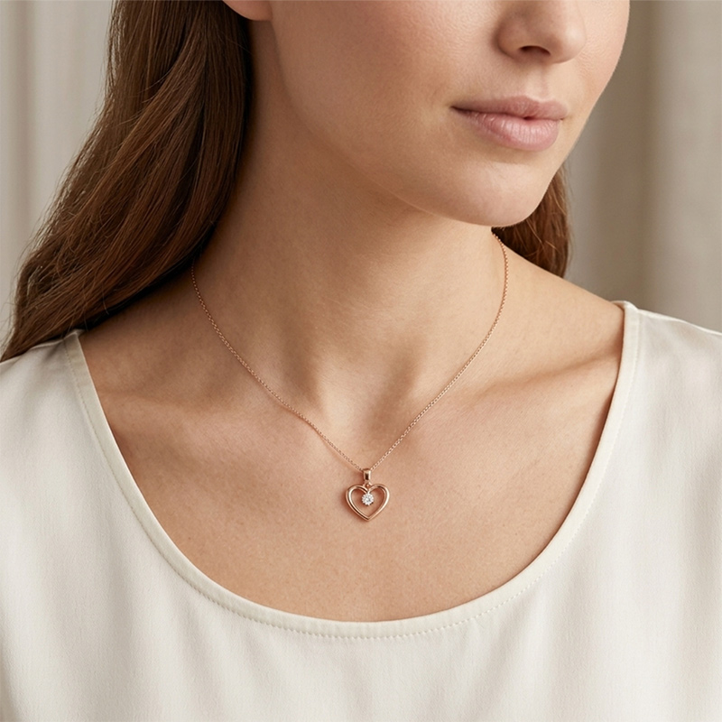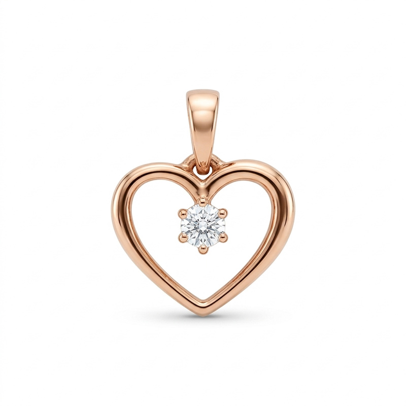 Prívesok srdiečko z ružového 14-karátového zlata so zirkónom