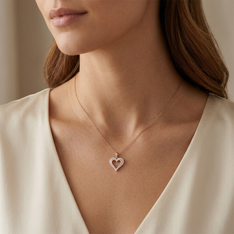 Prívesok srdiečko z ružového 14-karátového zlata so zirkónom
