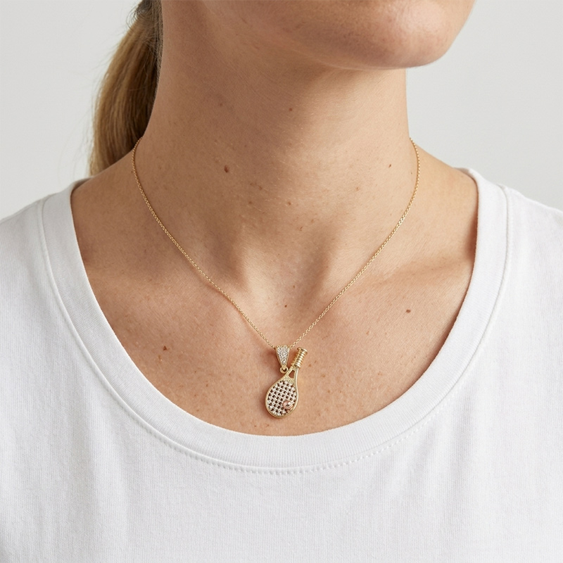 Prívesok tenisová raketa z kombinovaného 14-karátového zlata
