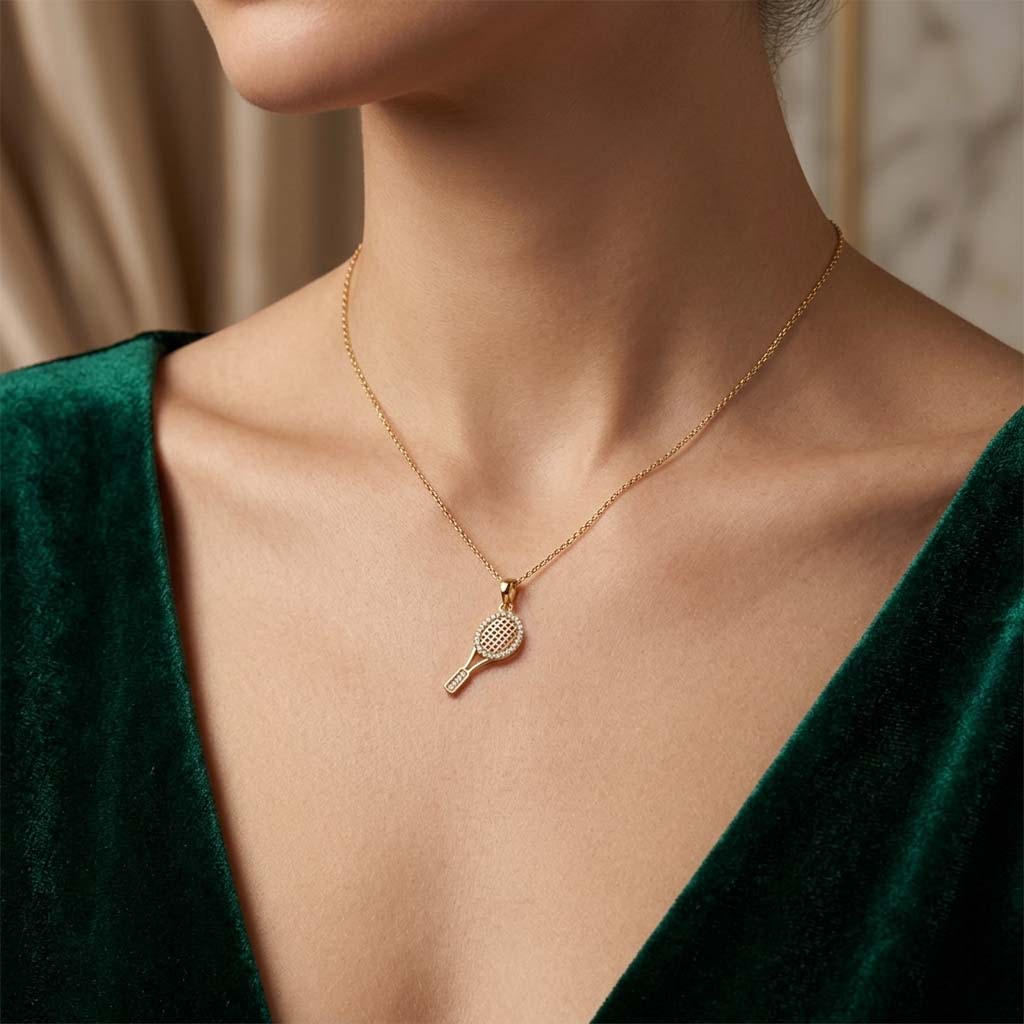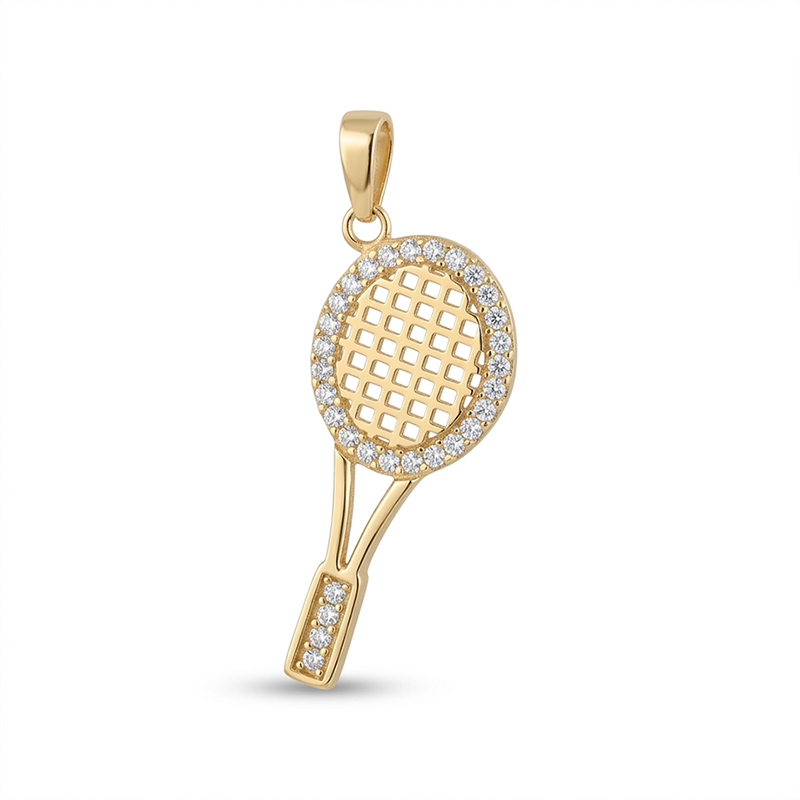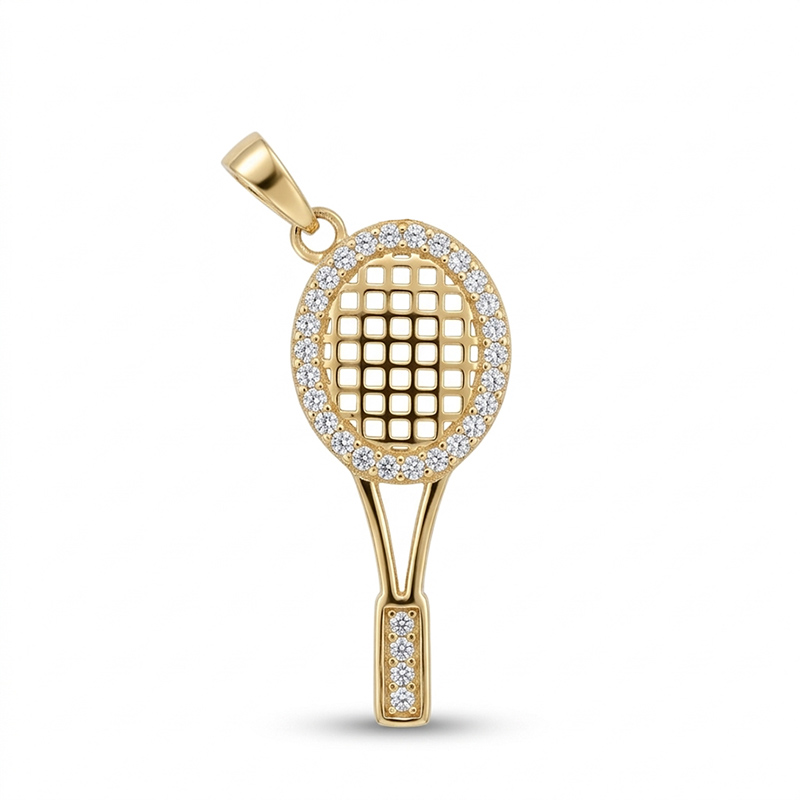 Prívesok tenisová raketa zo žltého 14-karátového zlata so zirkónom