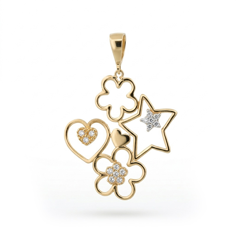 Prívesok zo žltého 14-karátového zlata so zirkónom
