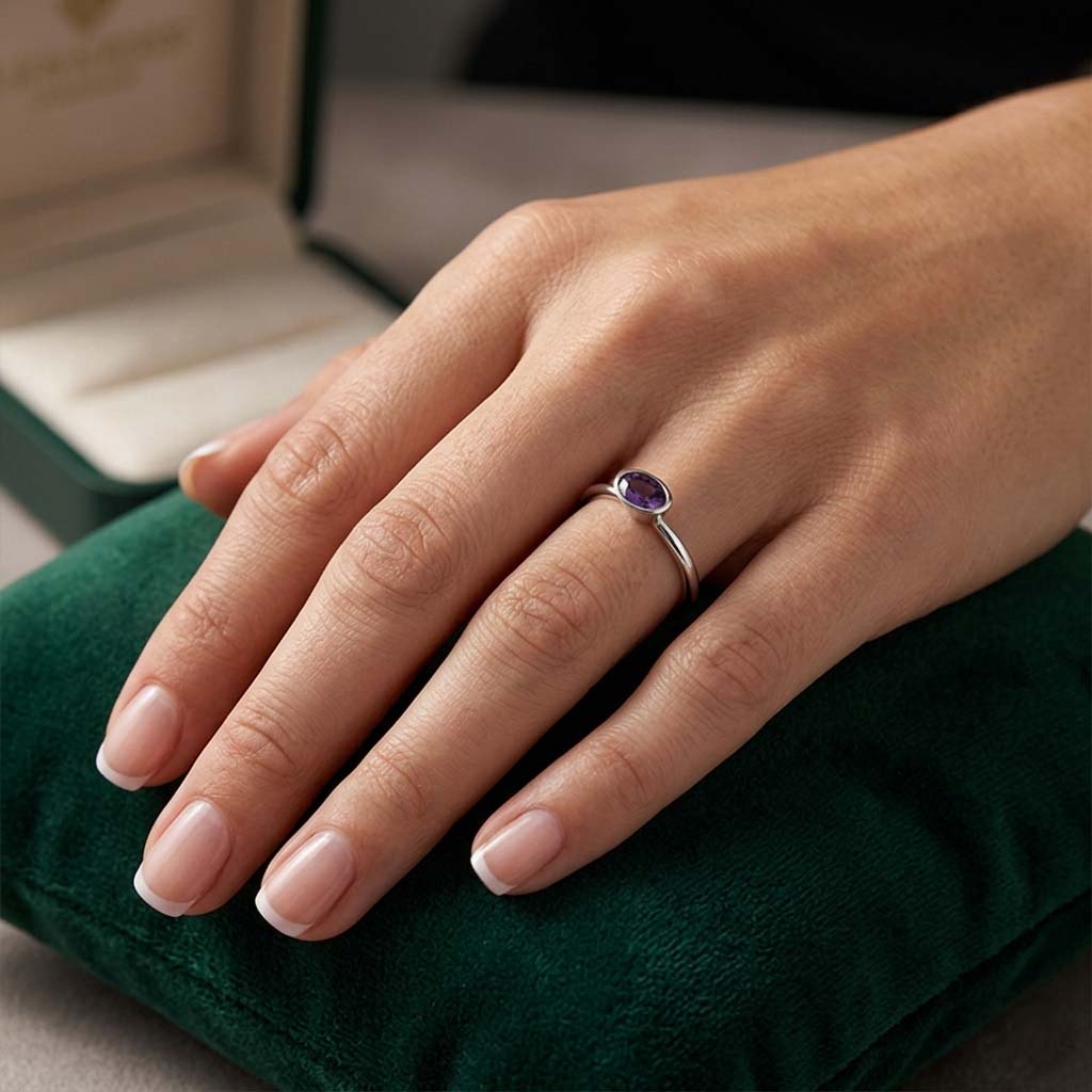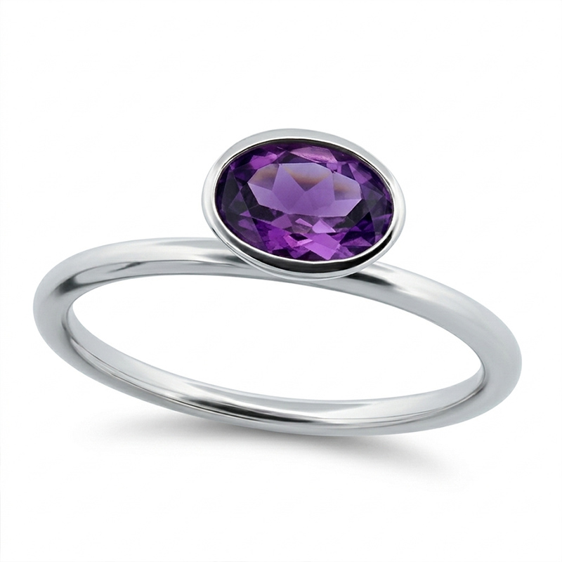 Prsteň z bieleho 14-karátového zlata s ametystom