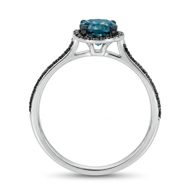 Prsteň z bieleho 14-karátového zlata s čiernymi briliantmi a topásom London