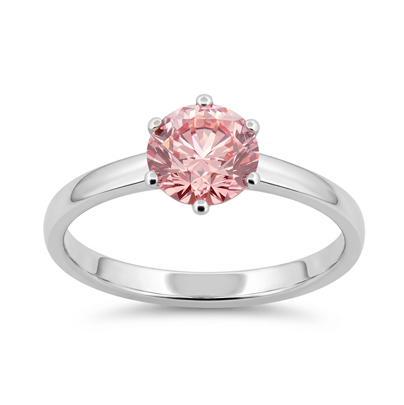 Prsteň z bieleho 14-karátového zlata s ružovým laboratórnym briliantom