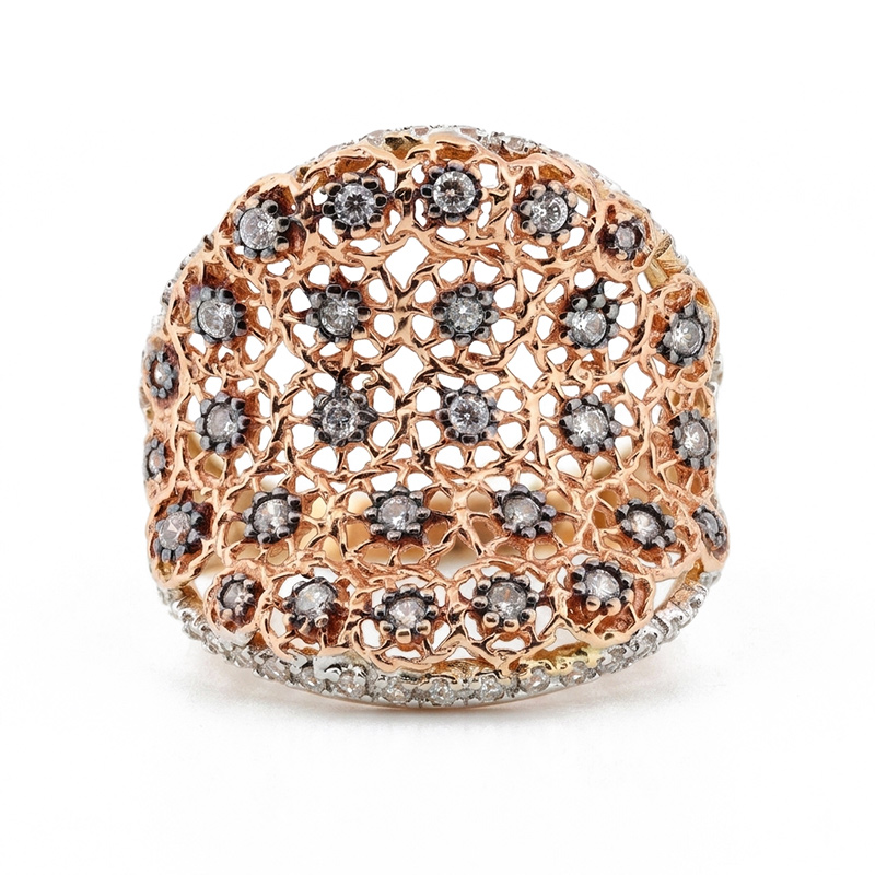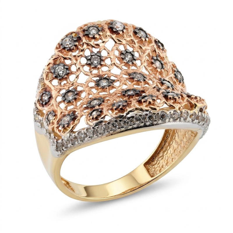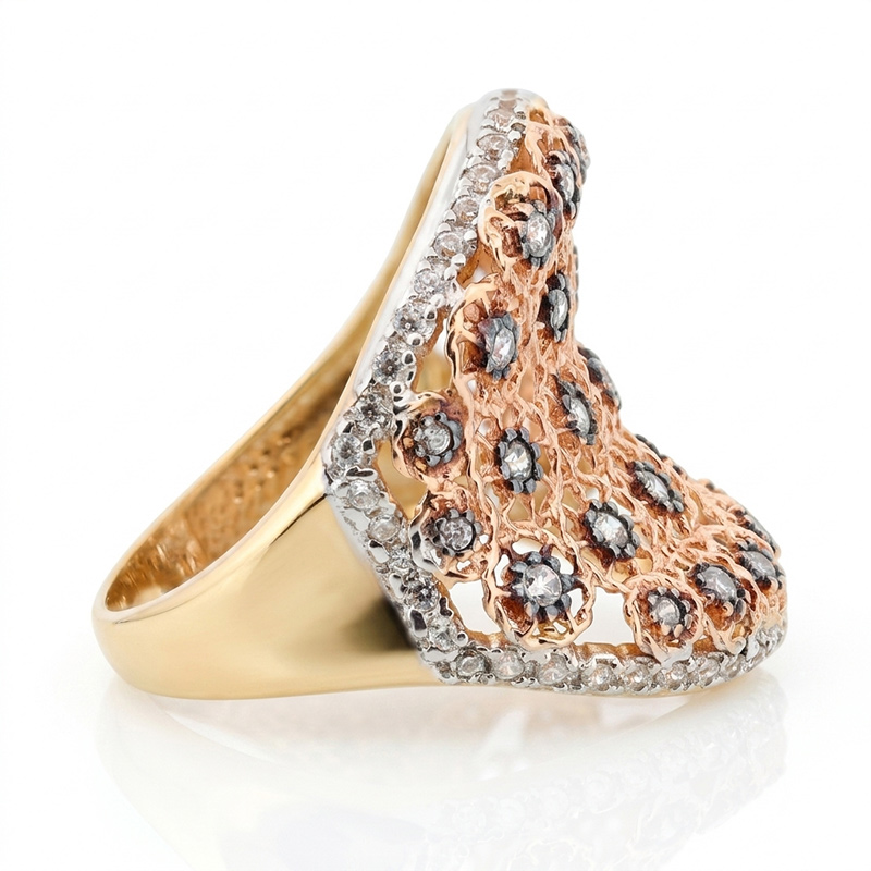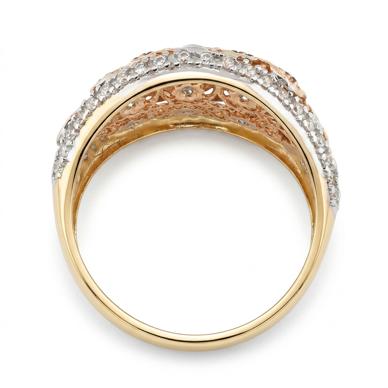 Prsteň zo žltého, bieleho a ružového 14-karátového zlata