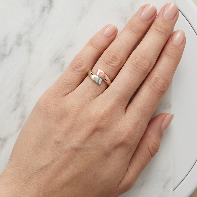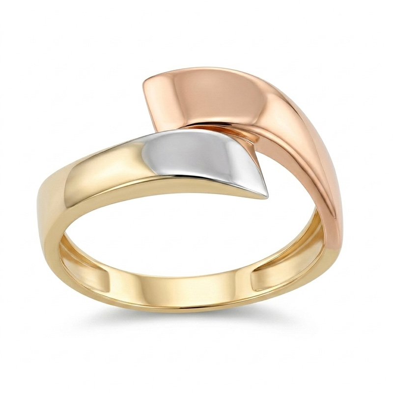 Prsteň zo žltého, bieleho a ružového 14-karátového zlata