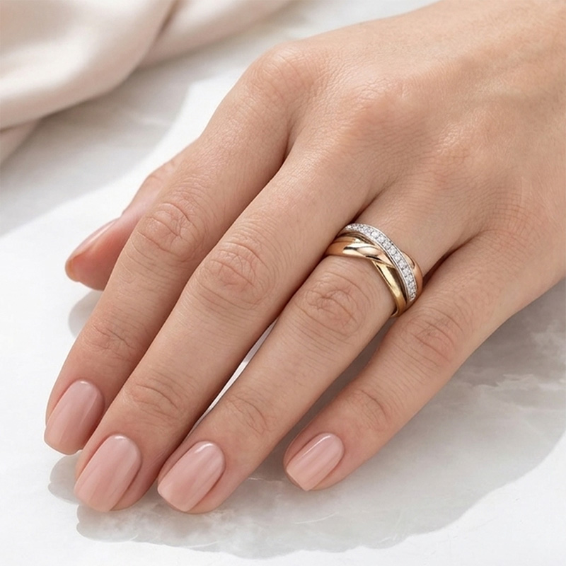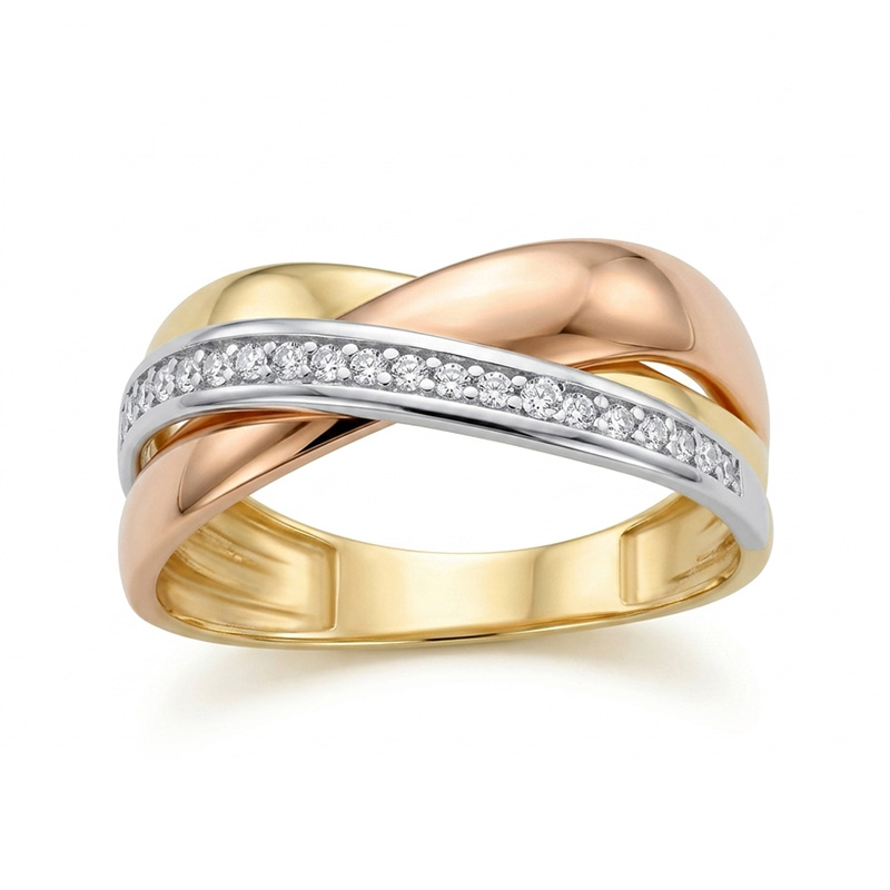Prsteň zo žltého, bieleho a ružového 14-karátového zlata so zirkónmi
