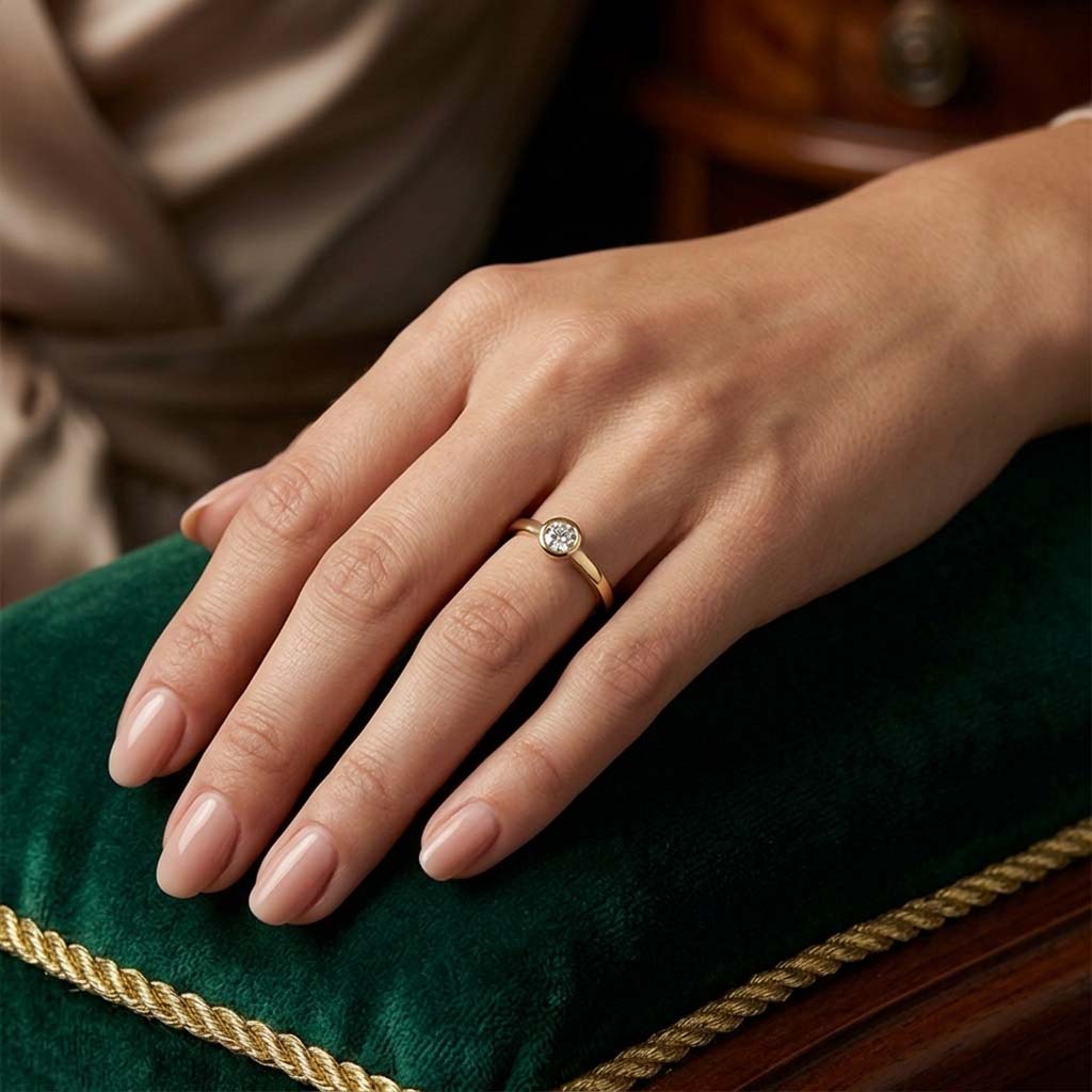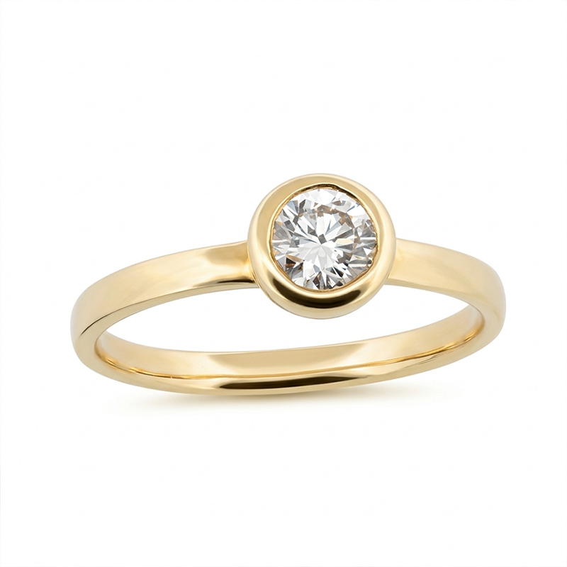 Prsteň zo žltého 14-karátového zlata s laboratórnym briliantom