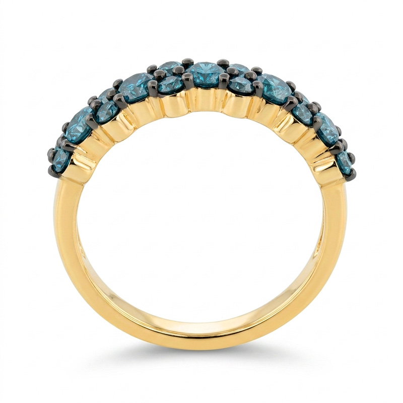 Prsteň zo žltého 14-karátového zlata s modrými briliantmi