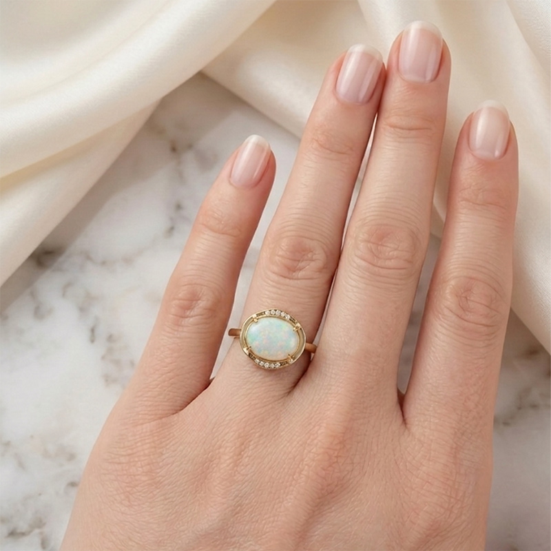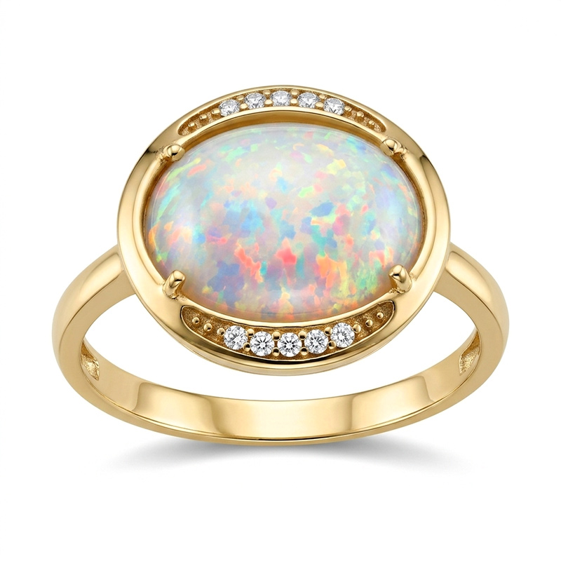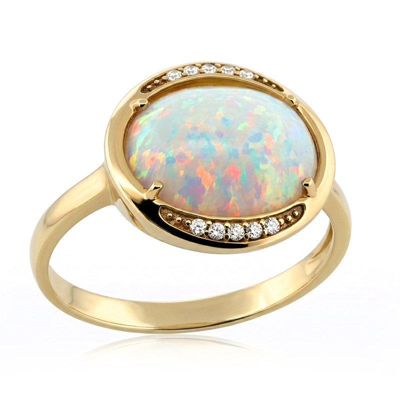 Prsteň zo žltého 14-karátového zlata s opálom
