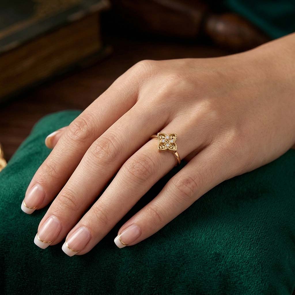 Prsteň zo žltého 14-karátového zlata so zirkónmi