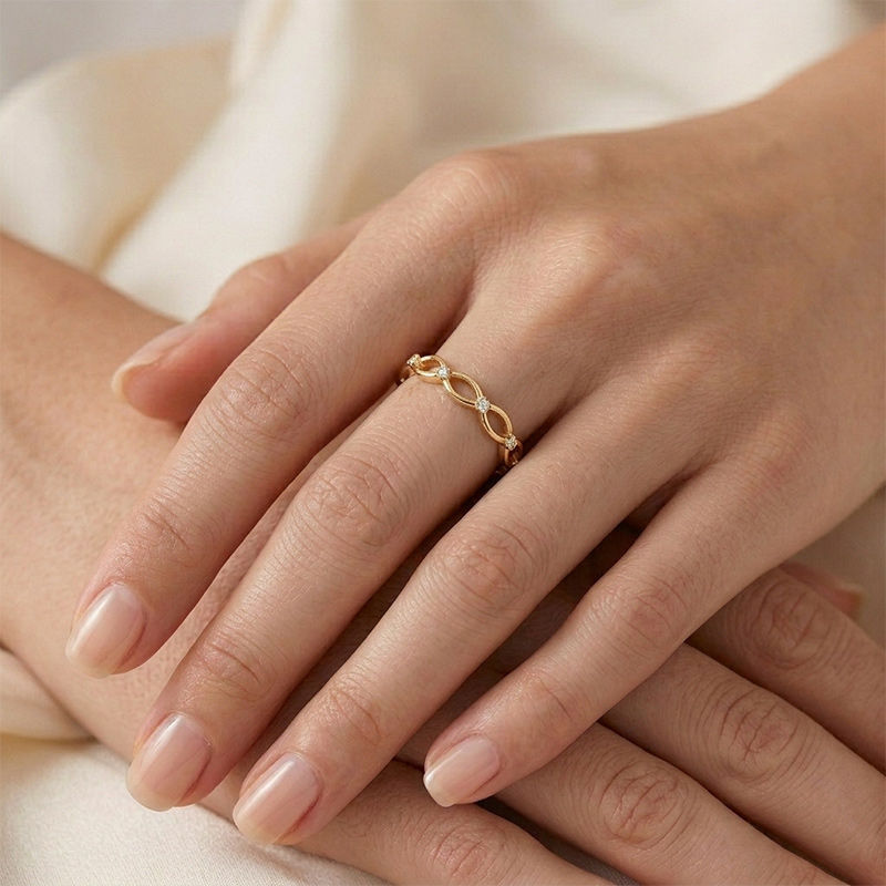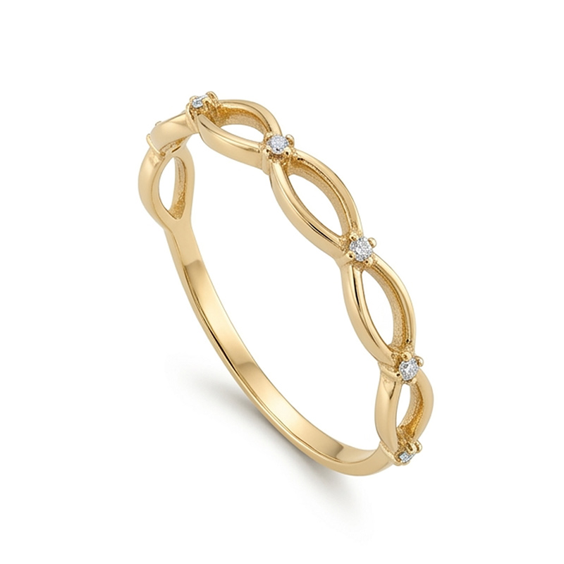 Prsteň zo žltého 14-karátového zlata so zirkónmi