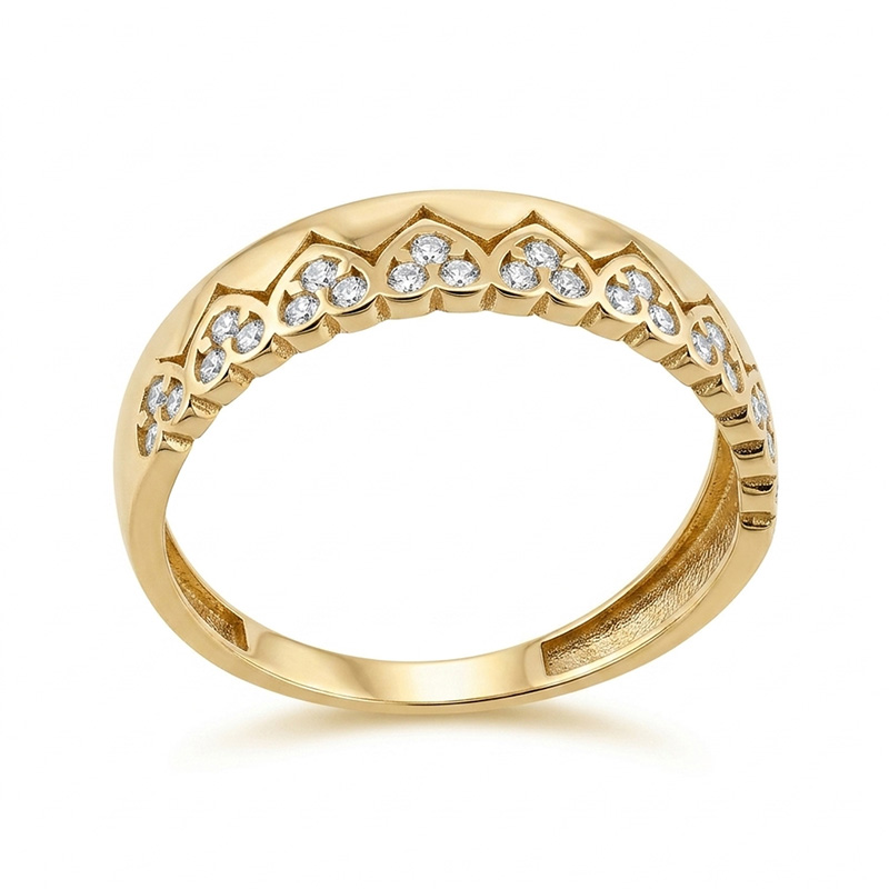 Prsteň zo žltého 14-karátového zlata so zirkónmi
