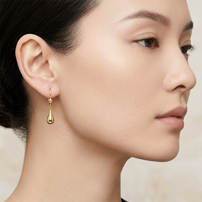 Visiace náušnice zo žltého 14-karátového zlata