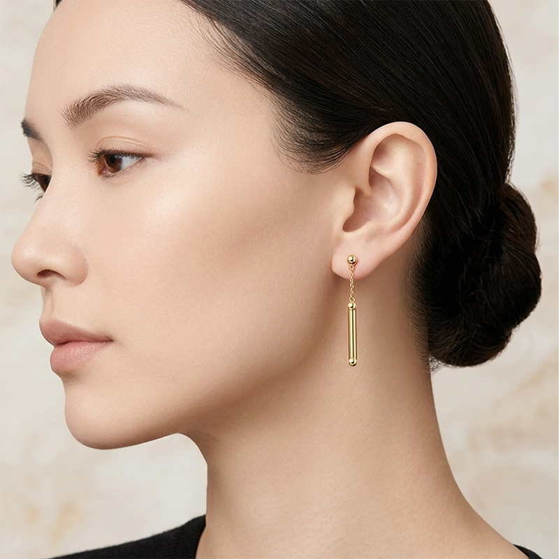 Visiace náušnice zo žltého 14-karátového zlata