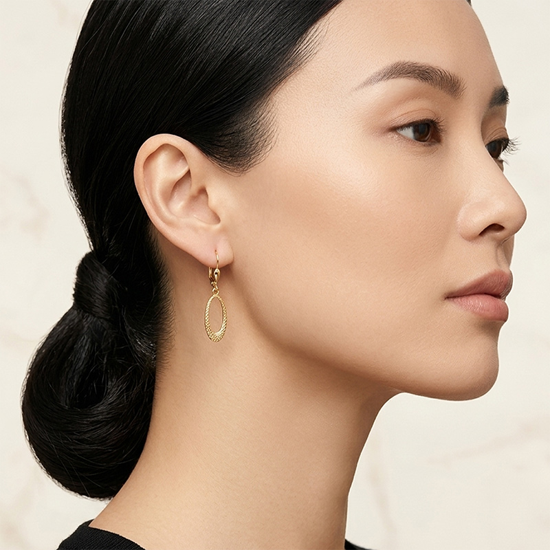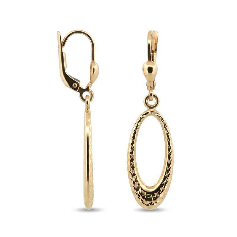Visiace náušnice zo žltého 14-karátového zlata