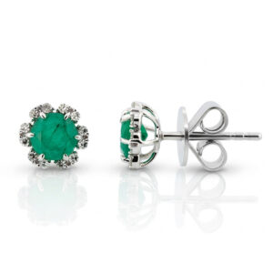 Briliantové náušnice z bieleho zlata so smaragdom