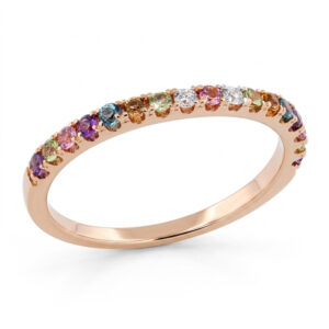 Briliantový prsteň z ružového zlata s farebnými zafírmi
