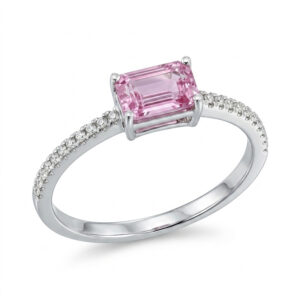 Briliantový prsteň z bieleho zlata s ružovým zafírom