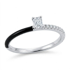 Briliantový prsteň z bieleho zlata s emailom